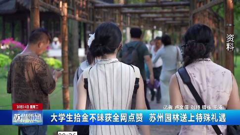 大學(xué)生拾金不昧獲全網(wǎng)點贊 蘇州園林送上特殊禮遇